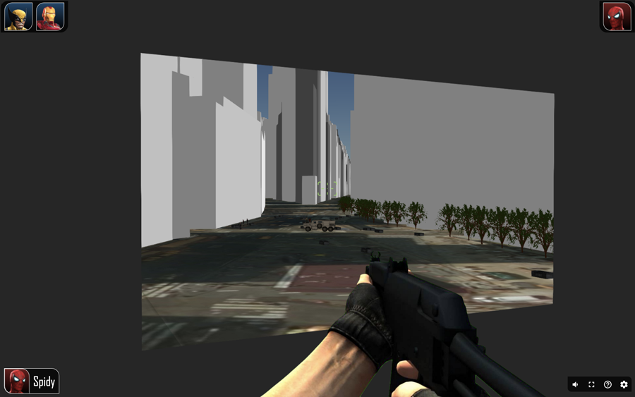 Our game is a multiplayer shooting game that is taking place in the vicinity of the Times Square. The game mode is a "team deathmatch" battle where you spawn on the map with your team, and you need to find and shoot the other team's players. The winning team is the one that stayed alive while the other team's players are dead. If you die, you can only view the rest of the game from a bird's eye view.